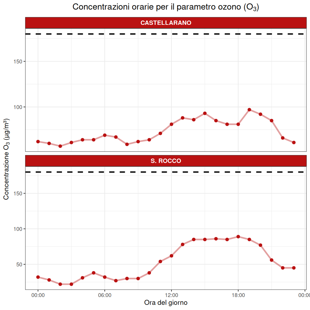 - Non si registrano superamenti del valore obiettivo di 120 µg/m³ (massima media mobile - MA - sulle 8 ore) presso le stazioni di misura considerate.