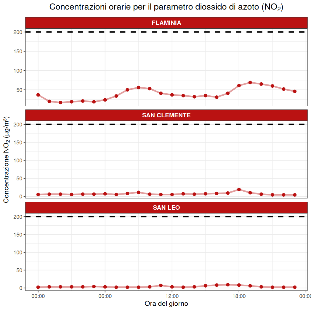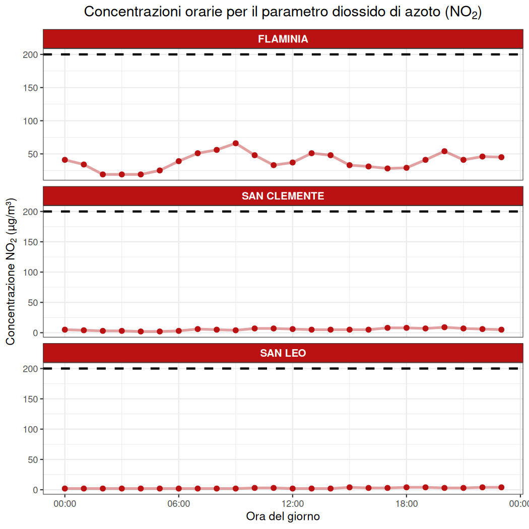 - Non si registrano superamenti del limite di 400 µg/m³ per tre ore consecutive presso le stazioni di misura considerate.