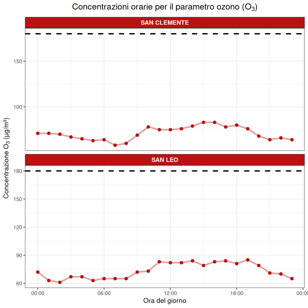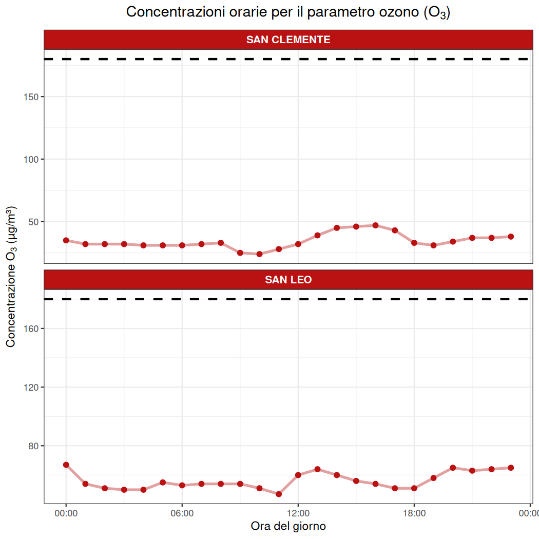 - Non si registrano superamenti del valore obiettivo di 120 µg/m³ (massima media mobile - MA - sulle 8 ore) presso le stazioni di misura considerate.